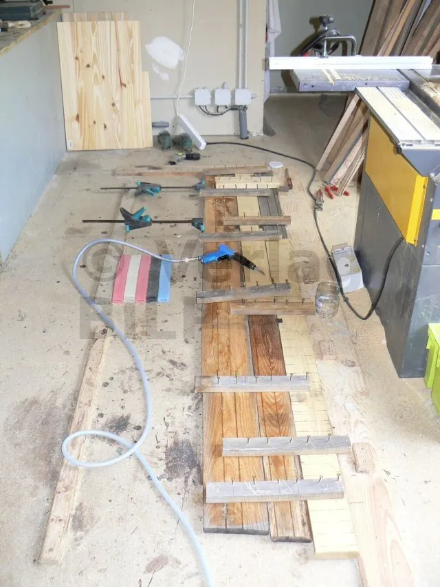- Befestigung von Weichholzlatten an Weichholzbalken.