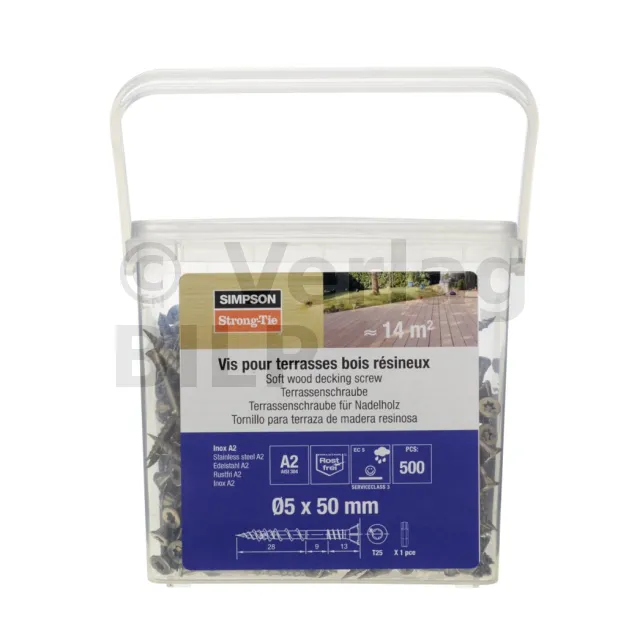 Schraube für Terrassendielen aus Holz, Doppelgewinde, Edelstahl A2, D5 L50 - Réf. SV5.0X50L500A2