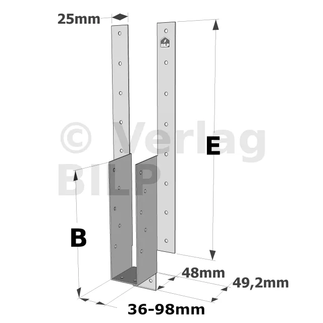 - Gefaltete Flügel zur Höhenverstellung des Schuhs im Verhältnis zum Stützelement. Nageln Sie die gefalteten Flügel fest.