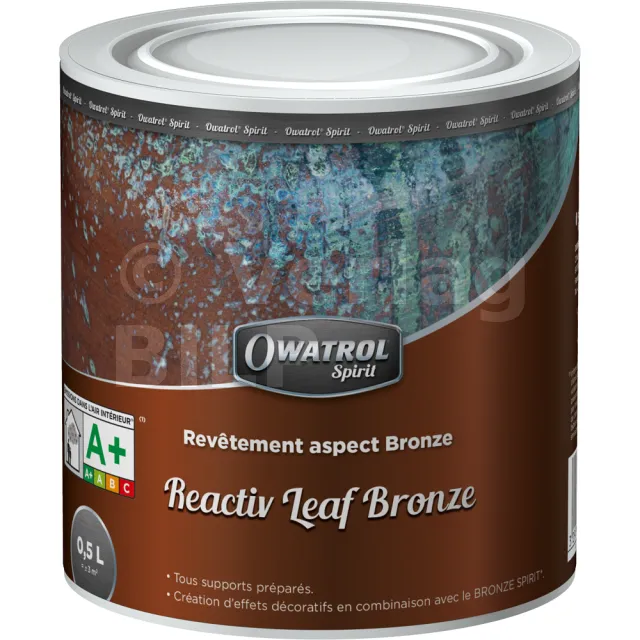 - Tragen Sie eine Schicht REACTIV LEAF BRONZE mit einem Pinsel oder einer Rolle (mittleres Haar) auf, um die solide, trockene und saubere Oberfläche zu bedecken, die ordnungsgemäß vorbereitet wurde (siehe oben).