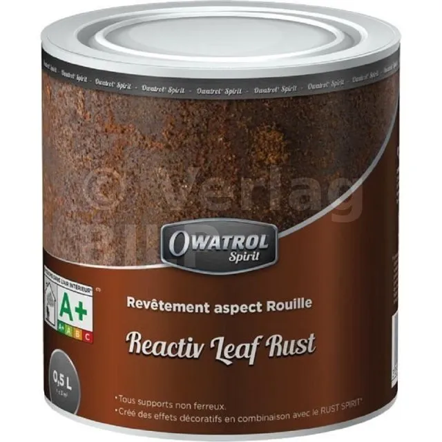 Verleihen Sie Ihren Wänden und anderen Oberflächen einen rostigen Look für einen moderneren und eleganteren Touch mit der Beschichtung Reactiv Leaf Rust, die in Kombination mit dem Aktivator Rust Spirit verwendet wird.