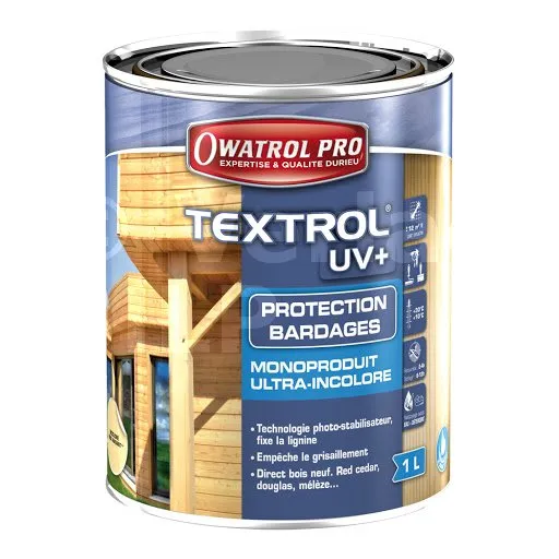 TEXTROL UV+ : Schutz für Lärche, Douglasie, usw. - UV-Barriere - farblos - auf Wasserbasis - Réf. 1100