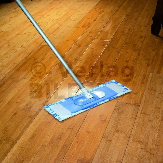 - Nach dem Trocknen mit einem Wischmopp mit Wasser nachspülen, dabei Pfützenbildung vermeiden.