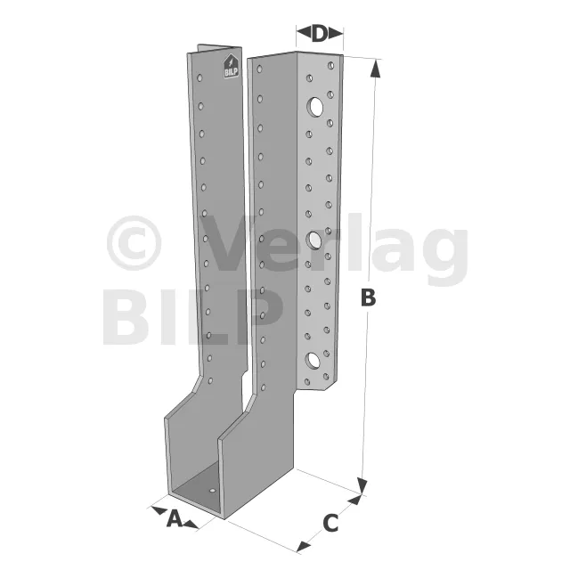 Große Balkenschuhe mit außenliegenden Schenkeln, GLE-Sortiment ECONOMIC (Größe 380mm, Dicke 2.5mm, Tiefe 90mm) - Réf. GLE720/120/2,5
