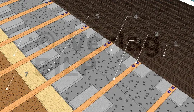 - 3 : befestigtes Lagerholz mit MULTI-MONTI TimberConnect Schrauben,