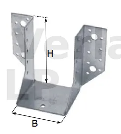 Die in dieser Tabelle angegebenen Maße gelten für Balkenschuhe mit Außenlaschen. Balkenschuhe mit Innenlaschen gibt es allgemein nicht in so vielen Größen. Sie sind in blau gekennzeichnet.