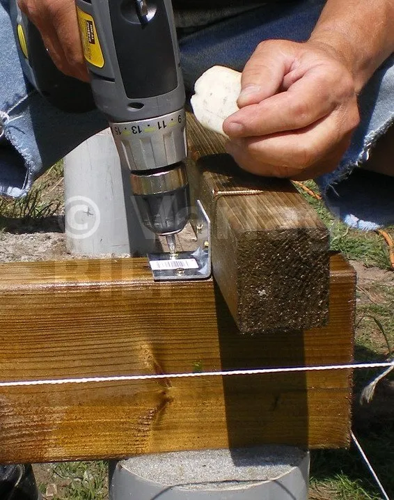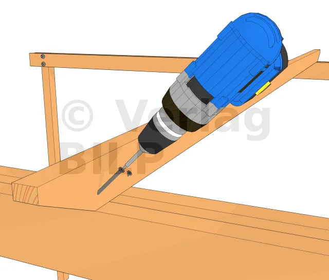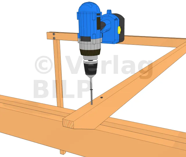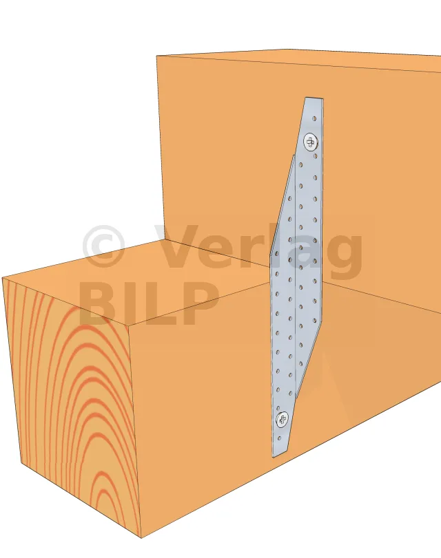 Wenn die Balkenhöhe es erlaubt, kann man den Balken einfach von oben anschrauben. Dafür gibt es überall im Handel Holzschrauben bis zu einer Länge von 150 mm. Damit können aber höchstens 120 mm hohe Balken angeschraubt werden. Oder man bohrt eine Stufenbohrung von oben in den Balken, damit der Kopf der Schraube versenkt wird. So können Balken bis zu einer Höhe von 170 mm befestigt werden.