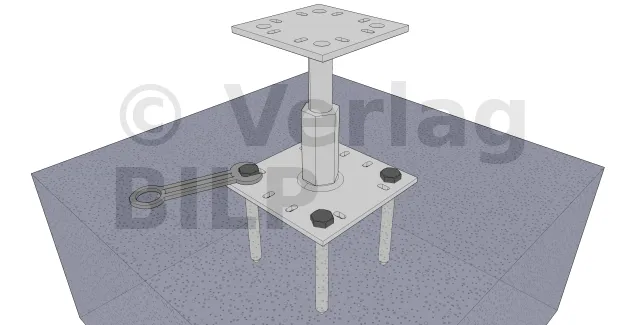 Tatsächlich sind verstellbare PPRC-Stützenfüße auch nach der Montage mit einem belasteten Schraubenschlüssel verstellbar.