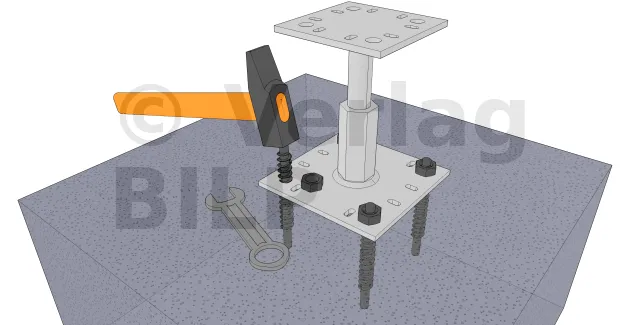Befestigung der Stützenfüße kann auf verschiedene Weise erfolgen, wie wir unten in diesem Artikel sehen können.