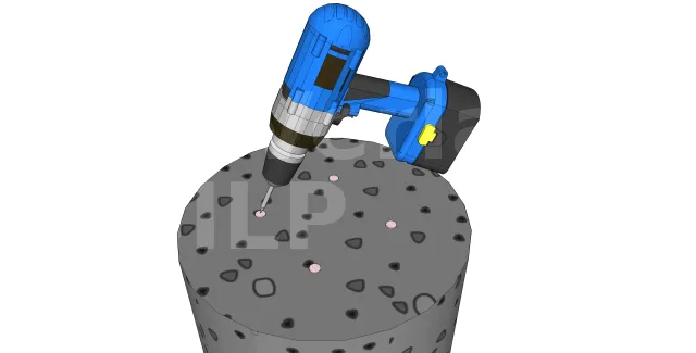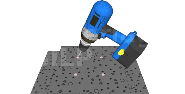Die Befestigung kann auch mit chemischer Dichtung von Gewindestangen erfolgen, die dann mit Muttern und Unterlegscheiben angezogen werden.