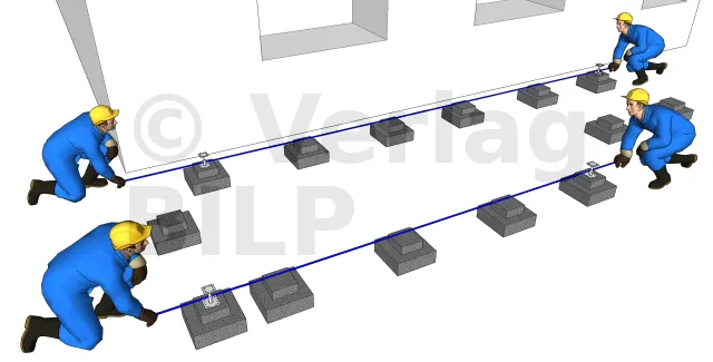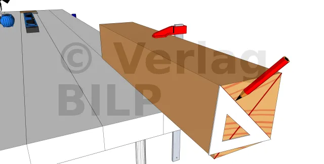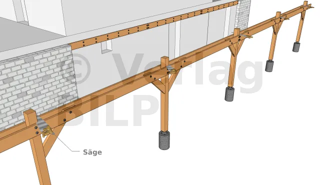 Die Befestigung der Ständer erfolgt immer durch Platzieren der Umfangsständer, da diese als Abstützung an den Enden und Gelenken für die Unterzugbalken.
