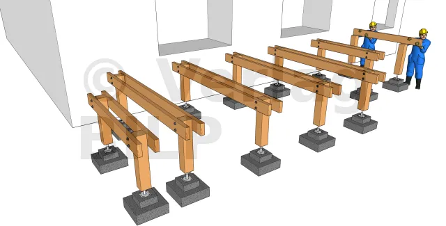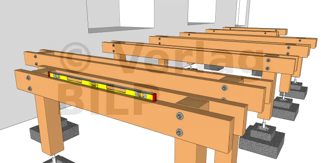 Um eine Holzterrasse auf Ständerwerk mit unverstellbaren Stützenfüßen zu montieren, können Sie die Beispiele der folgenden Schritte verfolgen :