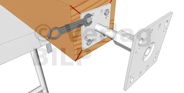 Die Befestigung mit HECO Multi-monti Sechskantschrauben ist eine der effizientesten und wirtschaftlichsten Techniken. Dies ist die bevorzugte Methode von BILP zur Befestigung von Stützenfüßen an den Sockeln.