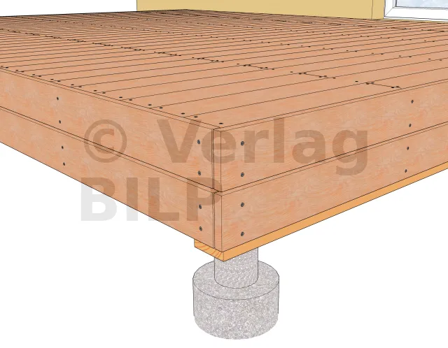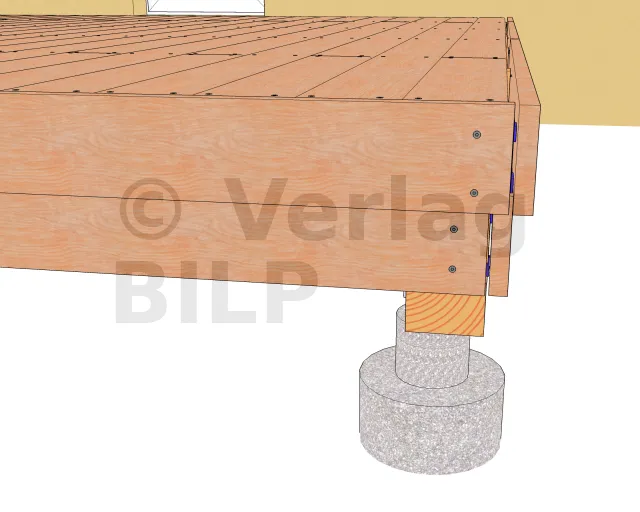 Diese Ausführung ist besonders bei einer Konstruktion mit Unterzugbalken vorzuziehen (sehen Sie diesen Abschnitt), weil eine höhere Unterkonstruktion verdeckt werden muss.
