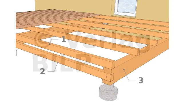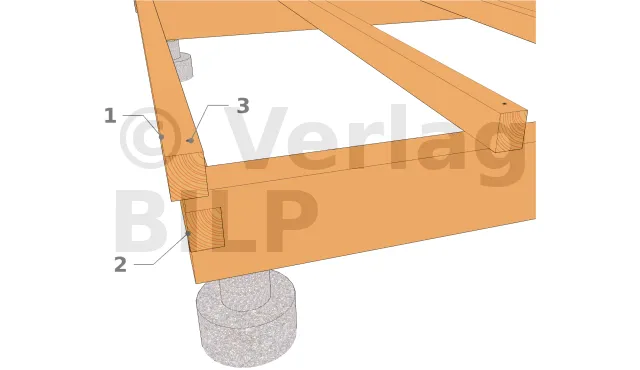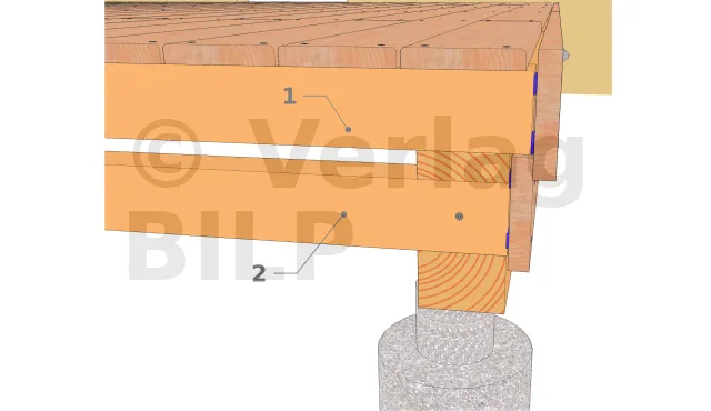 - 1 : Balken. Der Überstand entspricht der Dicke der unteren Abschlusskante