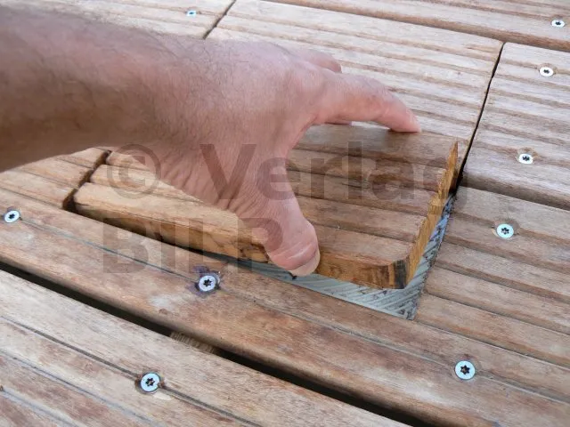 Die Herstellung einer Klappe in einer Holzterrasse ist nicht wirklich schwierig. Man verwendet genau das gleiche Material wie für die Terrasse : Lagerhölzer, Balken und Dielen.