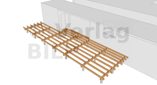 Schaffung eines Überhangs an Holzterrasse auf verstellbaren Kunststoffsockeln