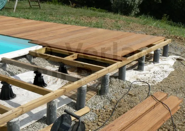 Aus welchen Gründen ? Die Befürworter dieser Methode argumentieren, dass die Struktur so lange wie die Blätter halten muss. Sie empfehlen daher Lagerhölzer aus Tropenholz, wenn die Bretter ebenfalls aus Tropenholz bestehen. Sie behaupten auch, dass die Schraubverankerung in Tropenholz besser ist und den Belastungen durch Tropenholzlamellen besser widerstehen kann. Andere sprechen auch von Ausdehnungskoeffizienten, die für die Struktur und für die Lamellen nahe beieinander liegen müssen.