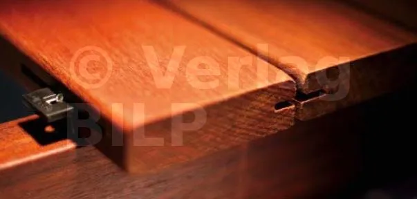 Die Dielen können vorgenutet sein, aber Sie können auch Standarddielen verwenden und mit Hilfe einer Flachdübelfräse eine Nut ziehen.