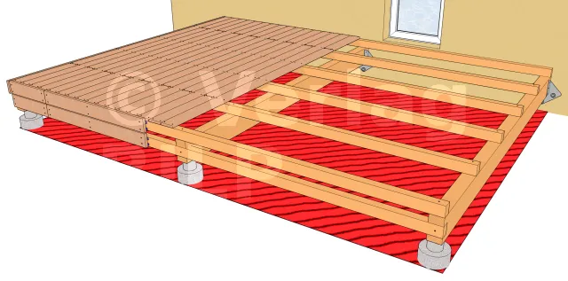 Darüber hinaus bilden Terrassen auf Kunststoffsockeln, Betonsockeln, Tragbalken oder Pfählen eine Grundfläche, da die Projektion ihrer Oberfläche auf den Boden möglich ist.