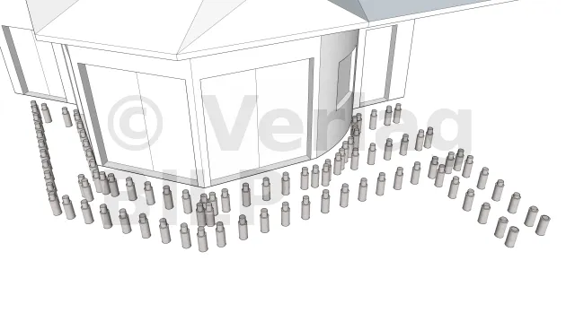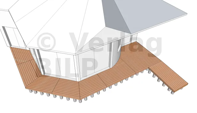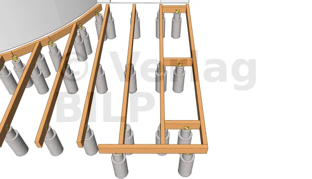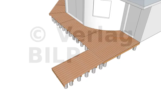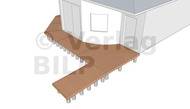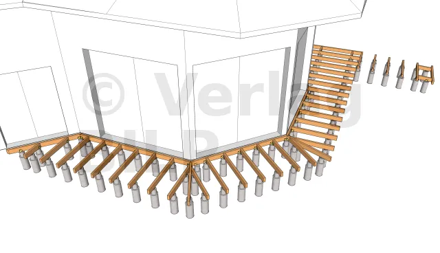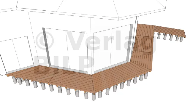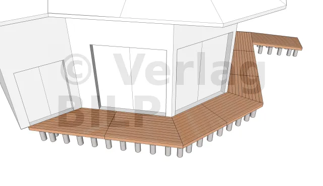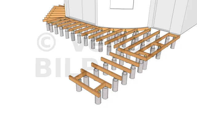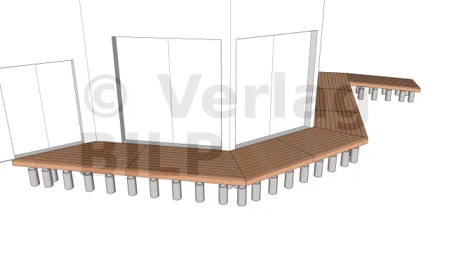 Die Verteilung der gemauerten Sockel erhält man, nachdem man die Teile der Terrasse insbesondere den maximalen Achsabstand zwischen den Stützen und die Spannweite der Lagerhölzer dimensioniert hat.