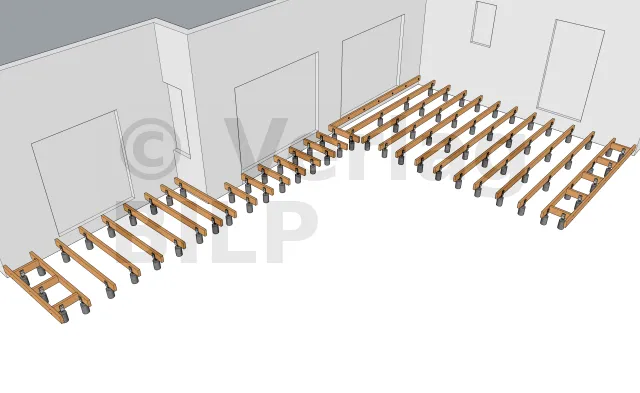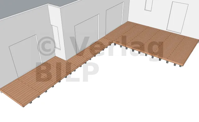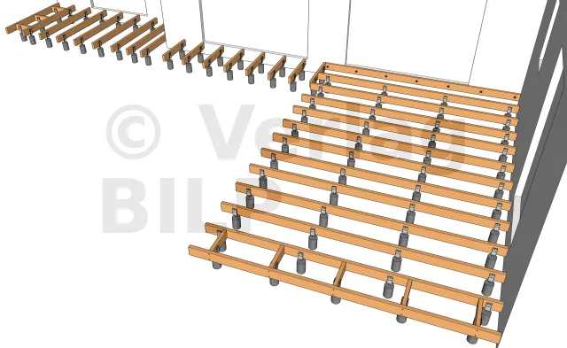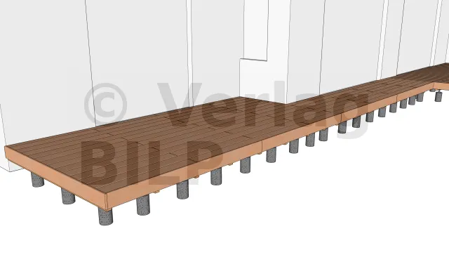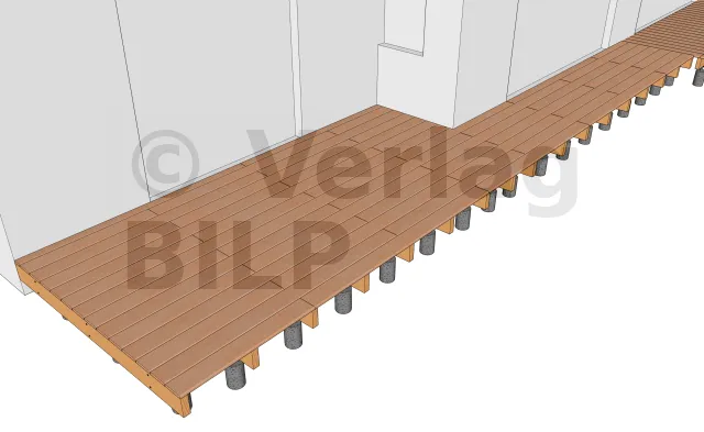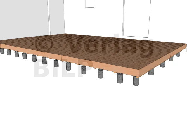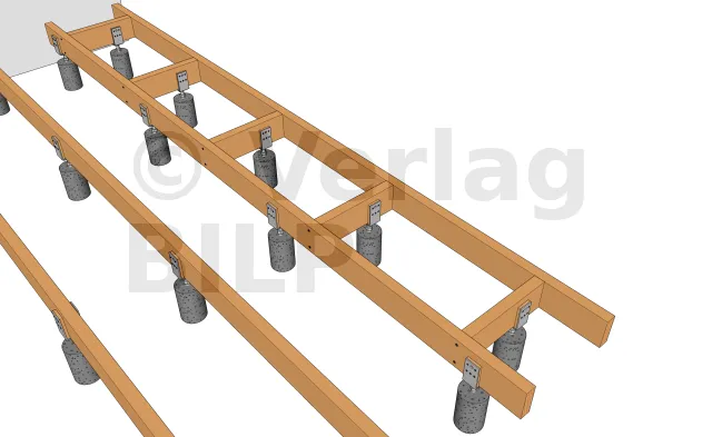 Sie werden entsprechend der Planung und den Abmessungen der verschiedenen Elemente, aus denen die Terrasse besteht, verteilt, wie der maximale Achsabstand zwischen den Stützen und die Spannweite der Lagerhölzer.