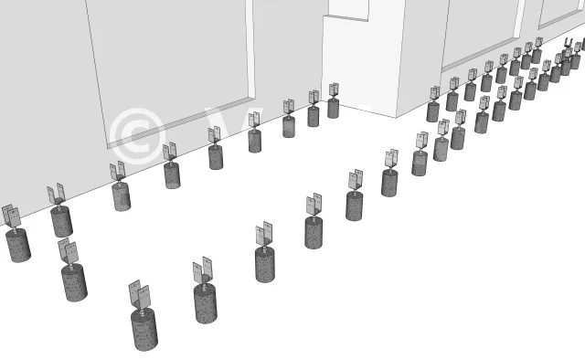 Die Einrichtung beginnt mit der Einrichtung der Betonsockel.