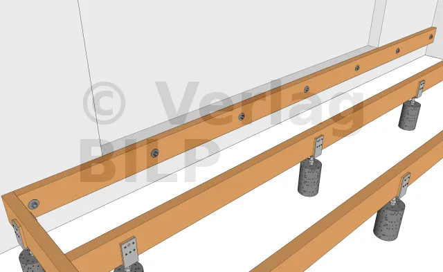 Sie können mit Winkelverbinder, combiConnect-Schrauben oder große, flachköpfige Rundkopfschrauben an den Lagerhölzer befestigt werden.