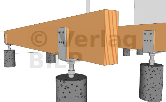 Die Befestigung kann durch chemische Dichtung der Gewindestangen oder durch MULTI-MONTI TimberConnect-Ankerschrauben erfolgen.