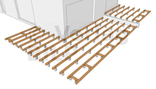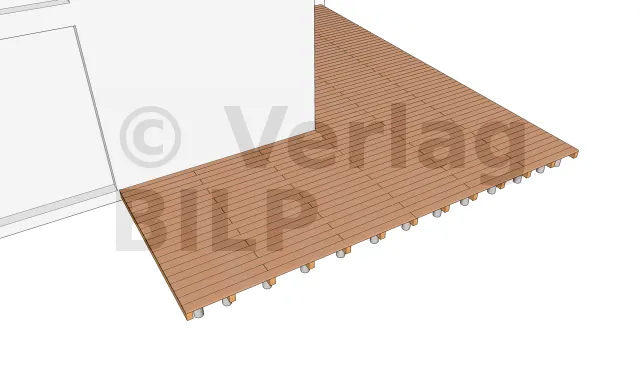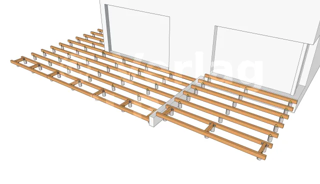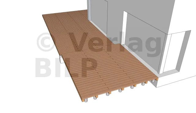 Die Anordnung der gemauerten Sockel wird nach Bemessung der Elemente, aus denen die Terrasse besteht, insbesondere der maximale Achsabstand zwischen den Stützen und die Spannweite der Lagerhölzer ermittelt.