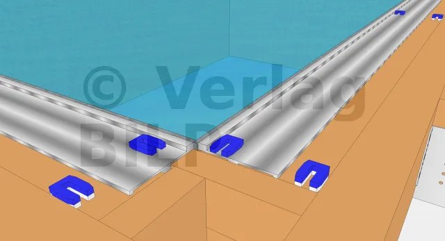 Der Randstein ermöglicht es, die Konturen des Beckens zu unterstreichen. Sie wird direkt über den Kunststoffkeilen platziert und mit Edelstahlschrauben befestigt.