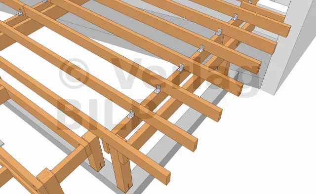 Bei diesem Projekt wurden die Balken mit einfachen Winkelverbinder an den Unterzugbalken befestigt, die mit Rillennägel oder Verbindungsschrauben befestigt werden können.