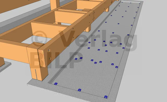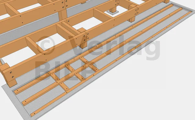 Um einen direkten Kontakt der Lagerhölzer mit der Platte zu vermeiden, ist es wichtig, Kunststoffkeile oder Holzkeile zu verwenden.