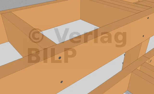 Die Balken können mit Winkelverbinder wie verstärkte Winkelverbinder oder einfache Winkelverbinder, die mit Rillennägel oder Verbindungsschrauben befestigt werden, an den Unterzugbalken befestigt werden.