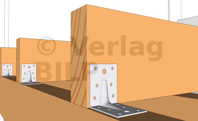 Die Befestigung der Balkenschuhe an den Balken erfolgt mit Rillennägel oder Verbindungsschrauben.