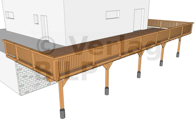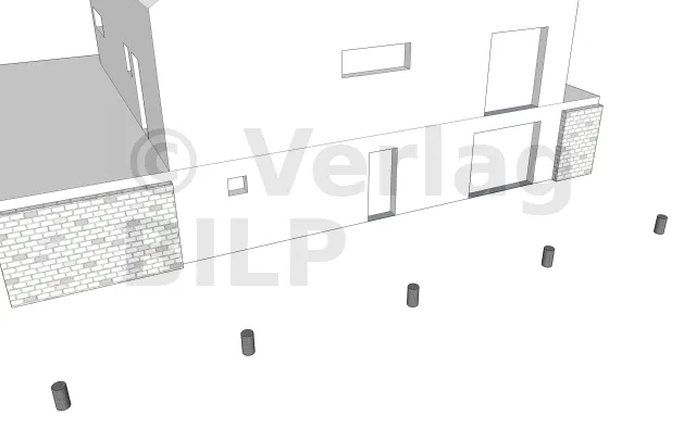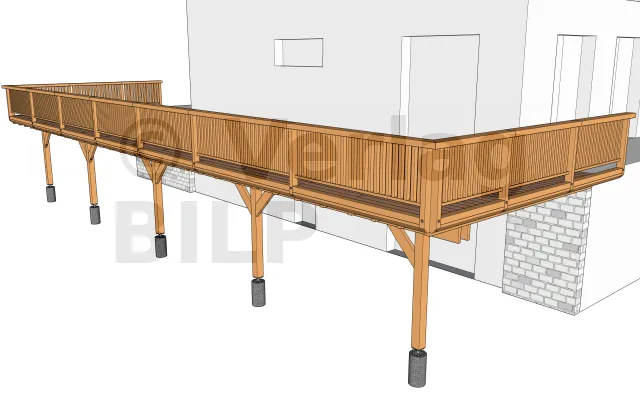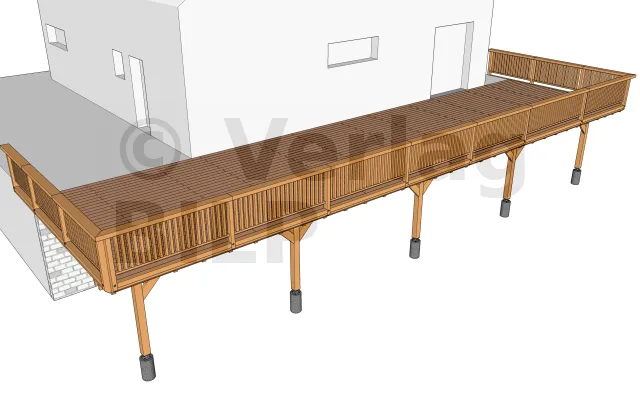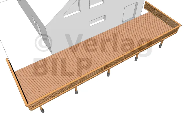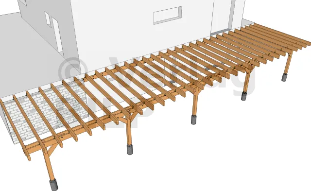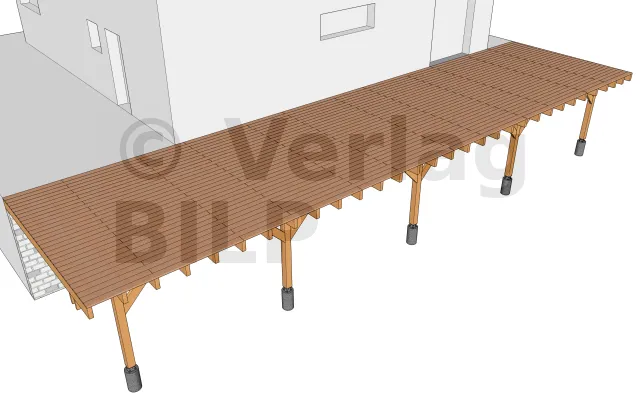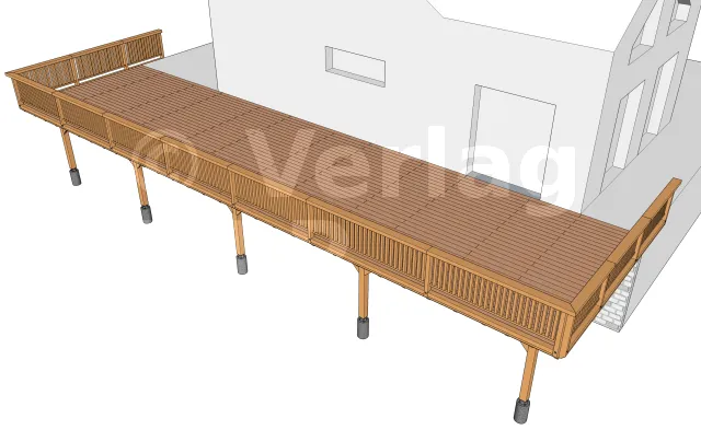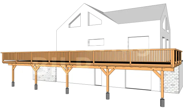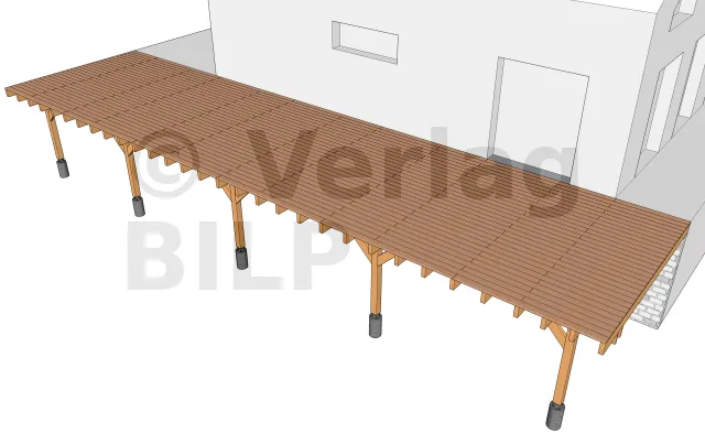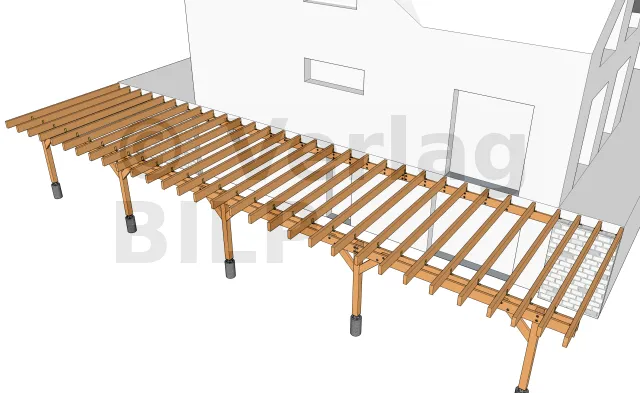 Die Bestimmung der Lage der Betonsockel beruht auf der Bemessung der Elemente der Terrassenkonstruktion, insbesondere dem maximalen Achsabstand zwischen den Stützen, dem Querschnitt und der Spannweite der Balken, der Unterzugbalken und der Pfosten.