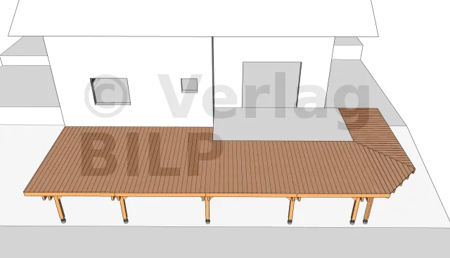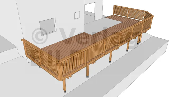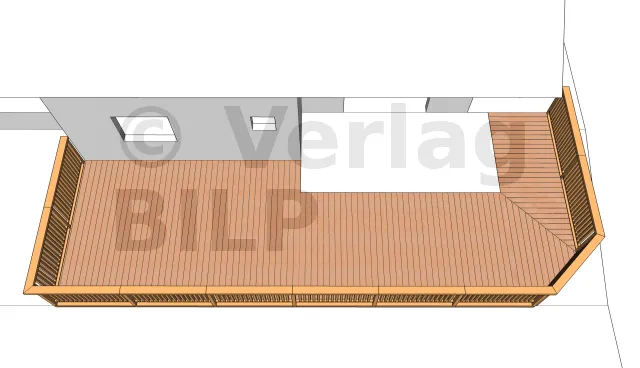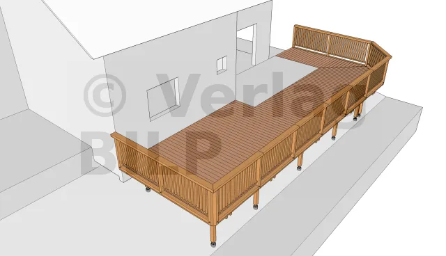 Für die Befestigung des Geländer werden die Muttern in einem Sackloch versteckt, ebenso wie für die Aussteifung, um die Ästhetik der Terrasse zu verbessern.