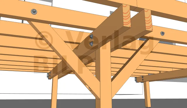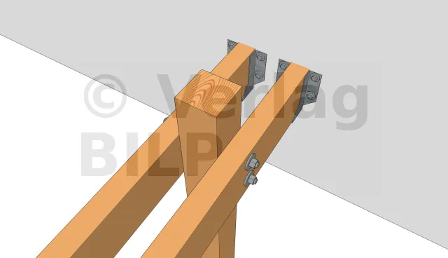 Die Balken können mit Winkelverbinder wie verstärkte Winkelverbinder oder einfache Winkelverbinder, die mit Rillennägel oder Verbindungsschrauben befestigt werden, an den Untyerzugbalken befestigt werden.