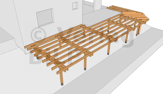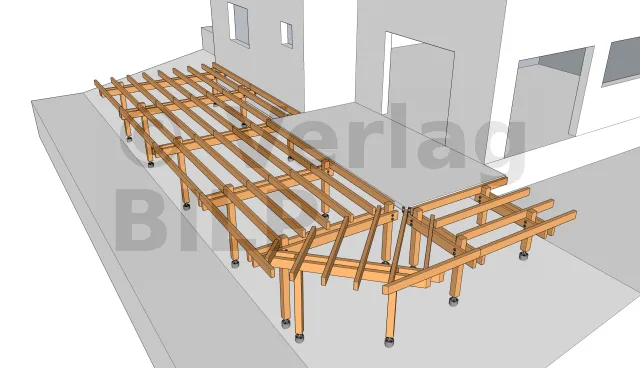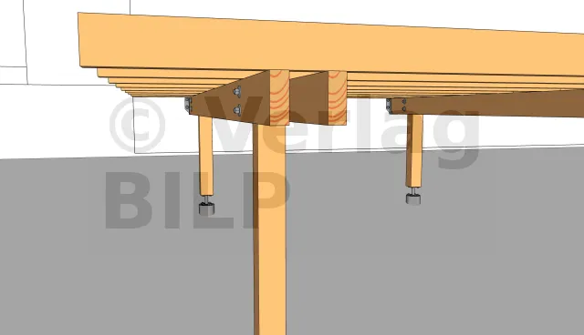 Um die Belüftung zu ermöglichen und eine Stagnation des Wassers zwischen dem Unterzug und dem Pfosten zu vermeiden, ist es wichtig, einen kleinen Raum durch die Verwendung von großen, hochbelastbaren Keile, Muttern oder Unterlegscheiben zu schaffen.