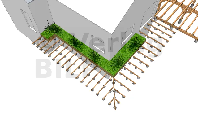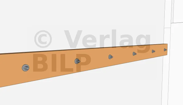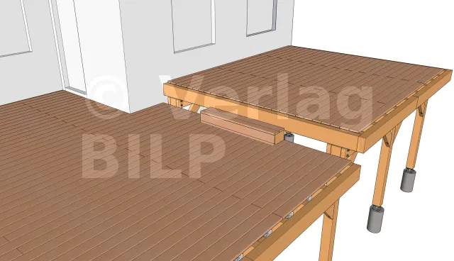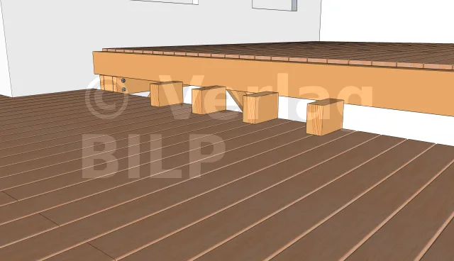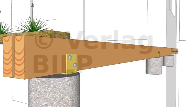 Um eine Belüftung zu ermöglichen und eine Stagnation des Wassers zwischen dem Unterzugbalken und dem Unterzugbalken zu vermeiden, ist es wichtig, einen kleinen Raum mit Hilfe von großen, schwer belastbaren Keilen oder Unterlegscheiben zu schaffen.