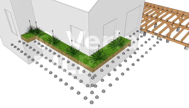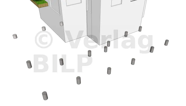 Um eine solide Basis für die Installation des Ständerwerks zu haben, da der Boden Unebenheiten aufweist, haben wir isolierte Betonfundamente gemacht.