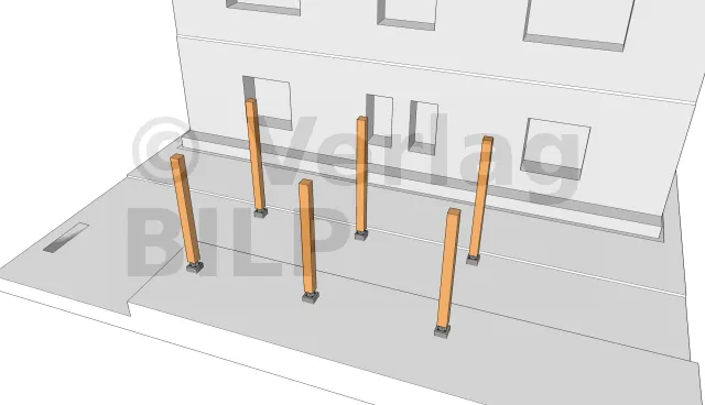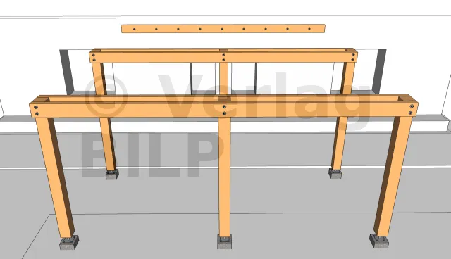 Die Installation der Ständer erfolgt immer beginnend mit den Eckständern, da diese an den Enden als Stützen und als Widerlager für die Unterzugbalken dienen.