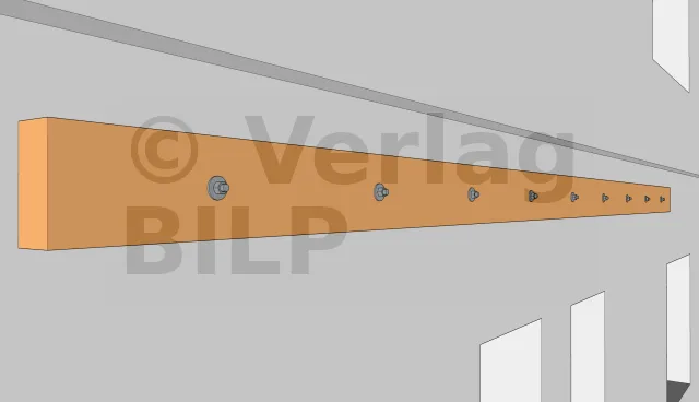 Die Montage der Unterzugbalken erfolgt mittels Gewindestangen, Muttern und Unterlegscheiben.