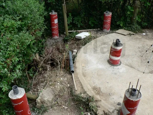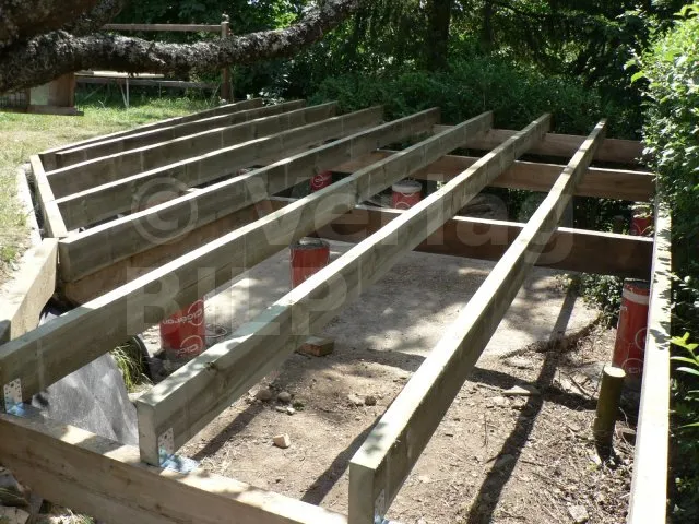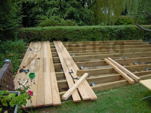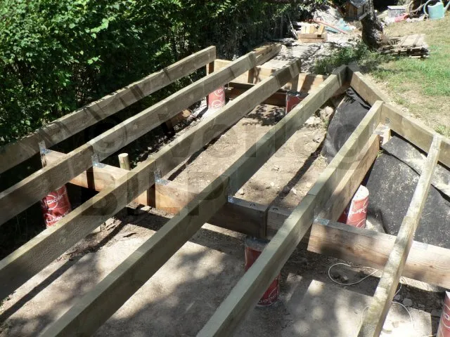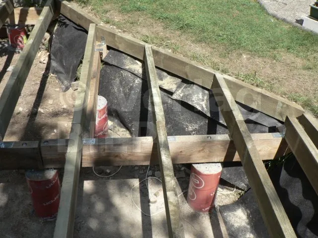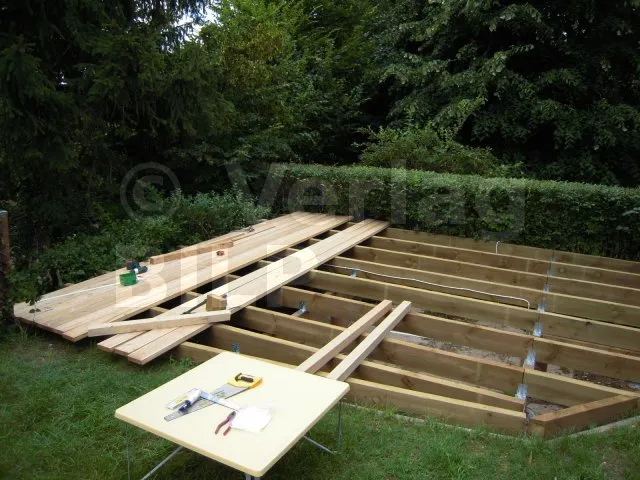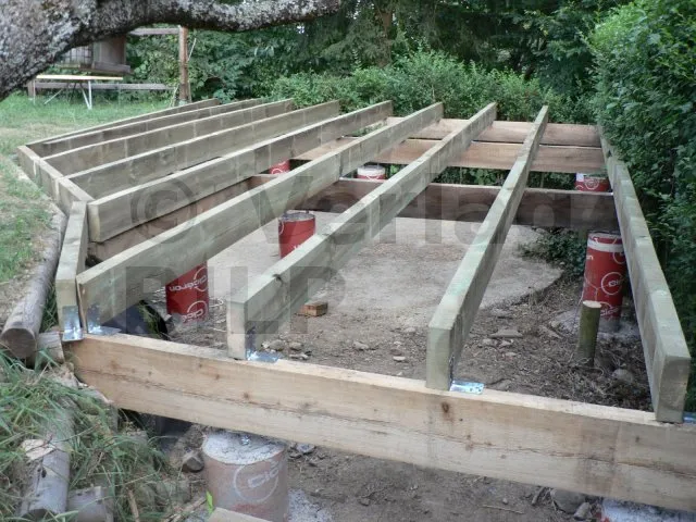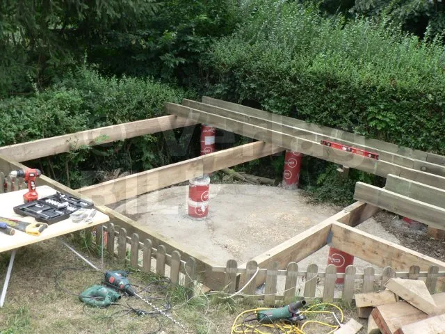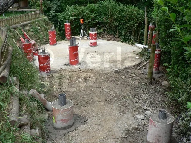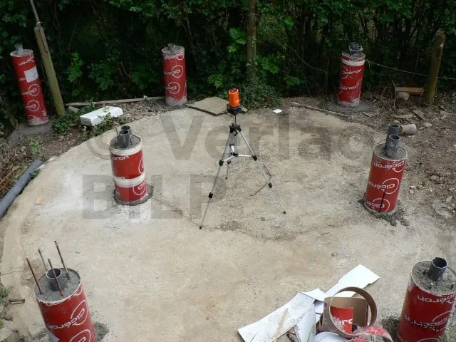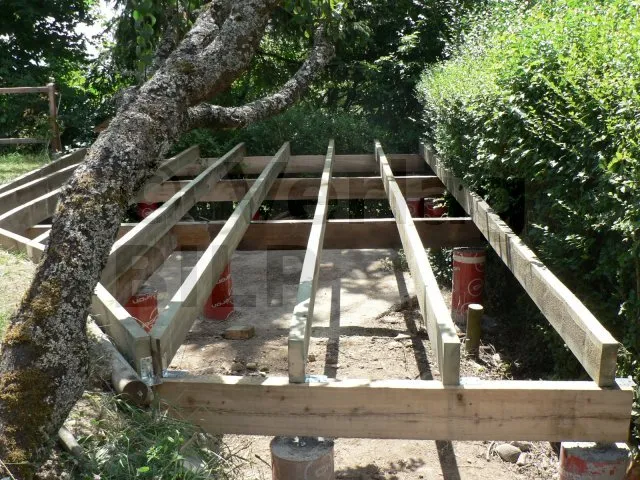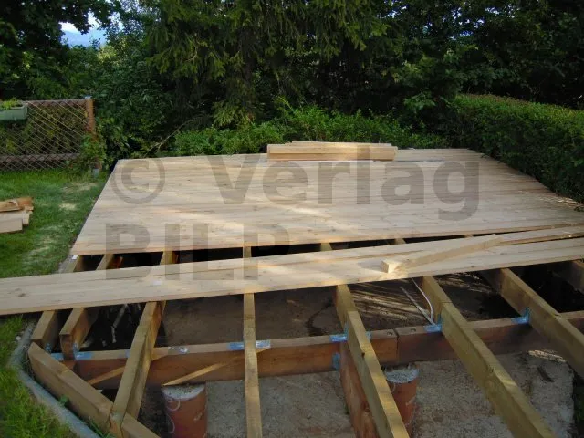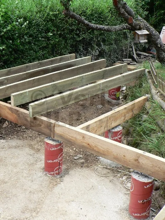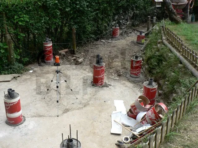 Die Lage der Betonsockel ergibt sich aus der Bestimmung der Abmessungen der verschiedenen Elemente, aus denen die Terrasse besteht, wie z.B. der maximale Achsabstand zwischen den Stützen, die Spannweite und der Querschnitt der Balken und die Spannweite der Unterzugbalken.