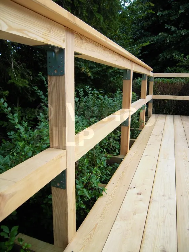 Die Struktur des Geländer wurde mit verstärkten Winkeln zusammengebaut, die entweder mit Rillennägel oder mit Verbindungsschrauben befestigt werden können.