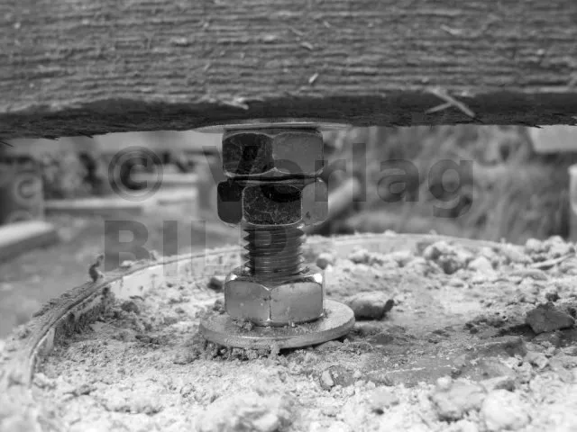 Um den direkten Kontakt zwischen dem Unterzugbalken und der Betonsockel zu vermeiden, haben wir bei diesem Projekt Gewindestangen verwendet, die vor dem Aufbringen von Muttern und Unterlegscheiben in den frischen Beton eingeschweißt wurden.