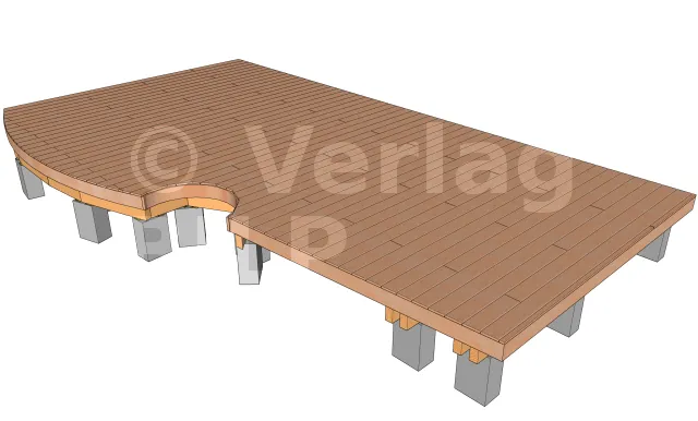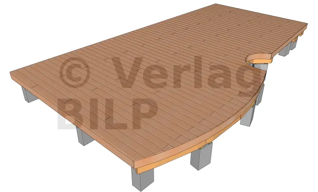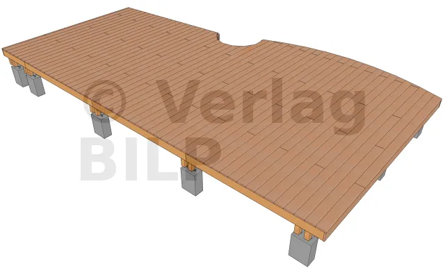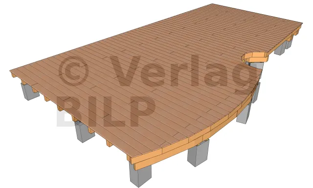 Die Verteilung der Betonsockel erfolgt entsprechend der Konstruktion und den Abmessungen der verschiedenen Elemente, aus denen die Terrasse besteht, wie z.B. dem maximalen Achsabstand zwischen den Stützen, der Spannweite und dem Querschnitt der Balken und der Spannweite der Unterzugbalken.