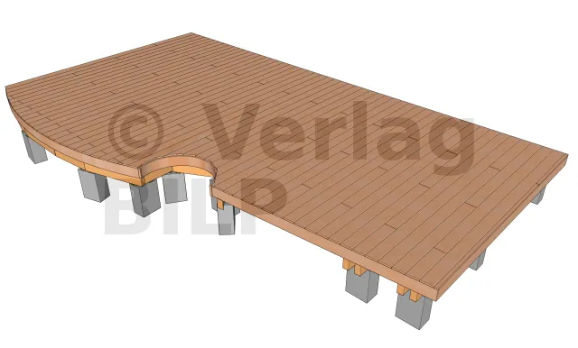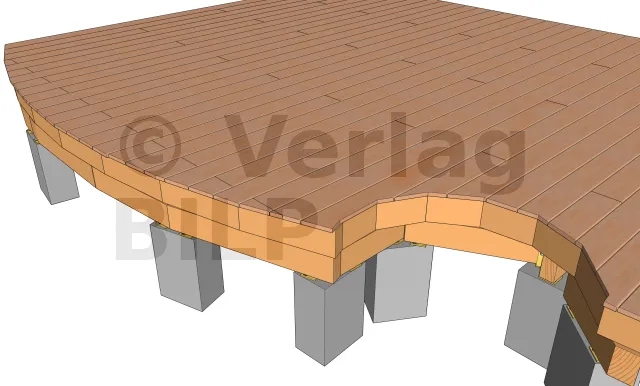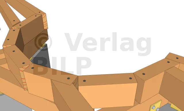 Andererseits wurden die peripheren Balken für die Realisierung der Kurve mit CombiConnect-Schrauben befestigt, die von oberhalb der Balken befestigt werden.