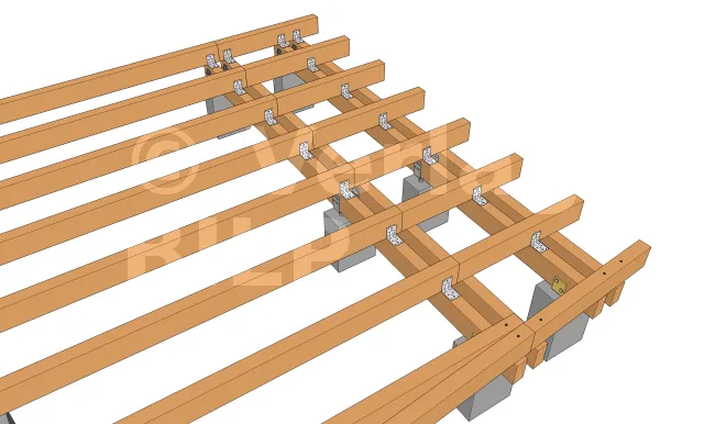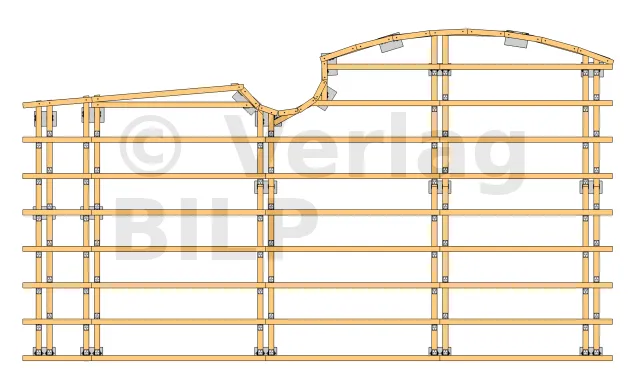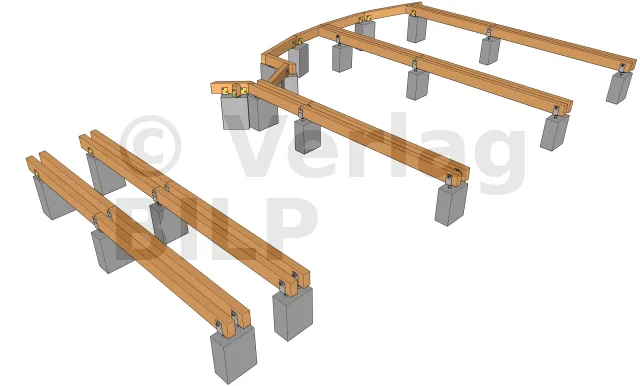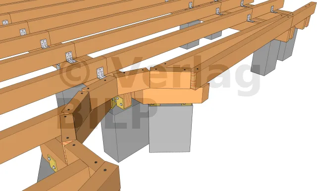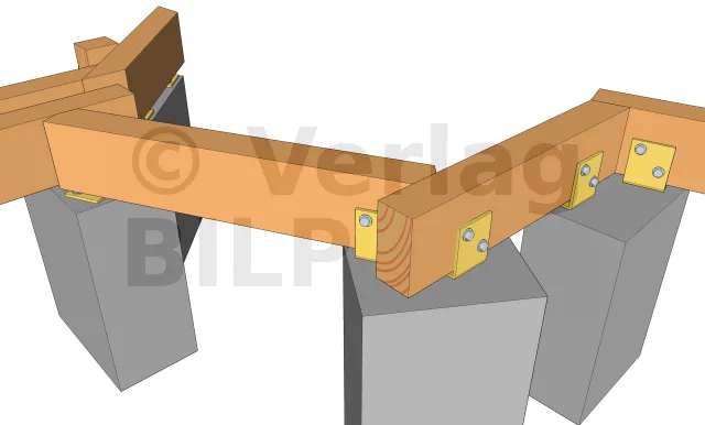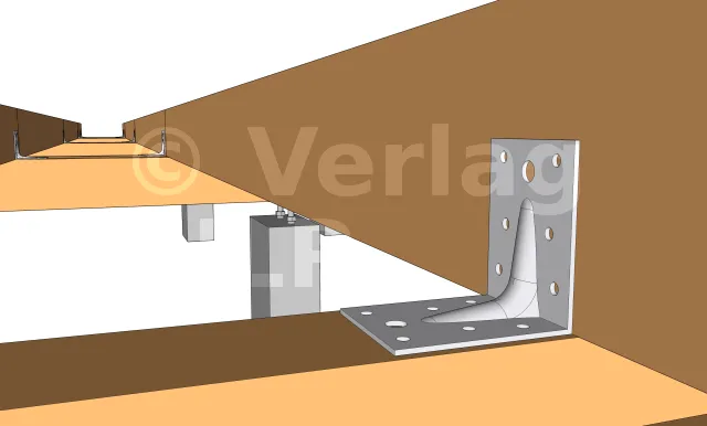 Die Befestigung der Innenbalken können mit Winkelverbinder wie z.B. verstärkten Winkelverbinder oder einfachen Winkelverbinder durchgeführt werden, die mit Rillennägel oder Verbindungsschrauben befestigt werden.