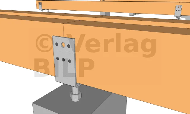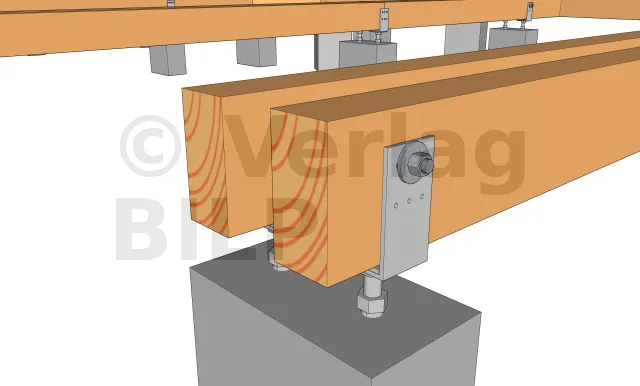 Für die Kontinuität von zwei Unterzugbalken haben wir auch verstellbare Vario-Stützenfüße PB31950 verwendet, die jedoch mit Rillennägel an den Unterzugbalken befestigt sind.